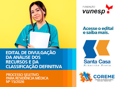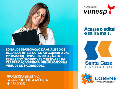 EDITAL DE DIVULGAÇÃO DA ANÁLISE DOS RECURSOS INTERPOSTOS AO GABARITO DAS PROVAS OBJETIVAS E DIVULGAÇÃO DO RESULTADO DAS PROVAS OBJETIVAS E DA CLASSIFICAÇÃO PRÉVIA PROCESSO SELETIVO PARA RESIDÊNCIA MÉDICA Nº 15/2026, REPUBLICADO EM VIRTUDE DE INCORREÇÕES. 17 de dezembro de 2025 Nenhum comentário Leia mais »