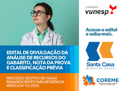 EDITAL DE DIVULGAÇÃO DA ANÁLISE DE RECURSOS DO GABARITO, NOTA DA PROVA E CLASSIFICAÇÃO PRÉVIA DO PROCESSO SELETIVO DE VAGAS REMANESCENTES PARA RESIDÊNCIA MÉDICA Nº 15/2026 5 de março de 2026 Nenhum comentário Leia mais »